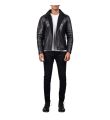 Mens Black Sheepskin Shearling Biker Leather Jacket