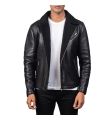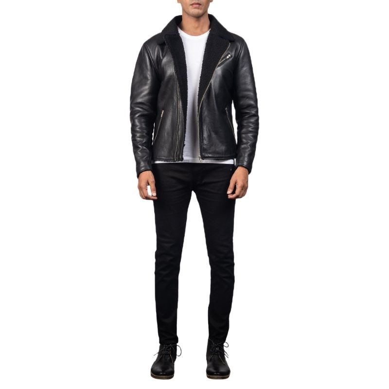 Crafted from luxurious sheepskin, this black leather jacket features a semi-aniline finish for a sleek look. Fully lined with soft faux fur, it offers warmth and comfort, while the notch collar and zipper cuffs add a stylish touch. With three exterior pockets, this jacket combines functionality with timeless elegance.
