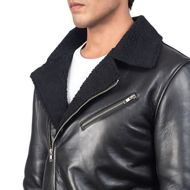 Real Leather Jacket with Shearling Lining, designed to offer the perfect blend of luxury, comfort, and durability. Crafted from 100% genuine leather, this jacket is ideal for those who appreciate timeless style and high-quality craftsmanship. The sleek, classic design is enhanced by fine details that make it a standout piece in any wardrobe.